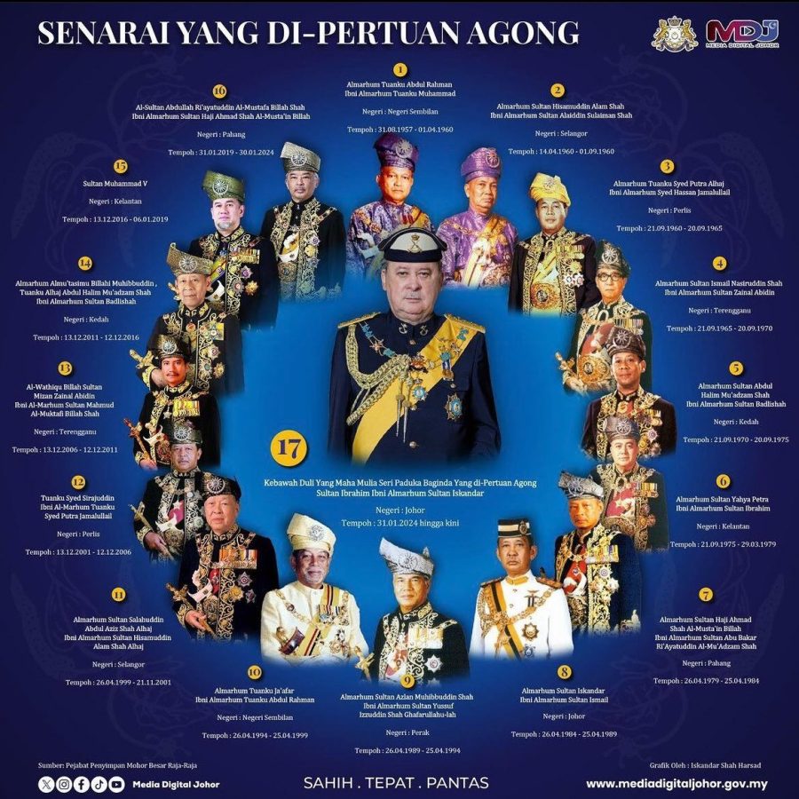 This historic conference saw for the first time the election of His Majesty the Yang di-Pertuan Agong and Deputy Yang di-Pertuan Agong for the independent Federation of Malaya. This election is conducted in accordance with Section 4, Article 32, item 3 of the Federal Constitution of Malaya. Tuanku Sir Abdul Rahman son of Almarhum Tuanku Muhammad, Yang di-Pertuan Besar of Negeri Sembilan was selected as the first DYMM Seri Paduka Baginda Yang di-Pertuan Agong for the Federation of Independent Malaya while Tuanku Sir Hishamuddin Alam Shah son of Almarhum Sultan Alauddin Sulaiman Shah, Sultan of Selangor was elected as Deputy Yang di-Pertuan Agong.